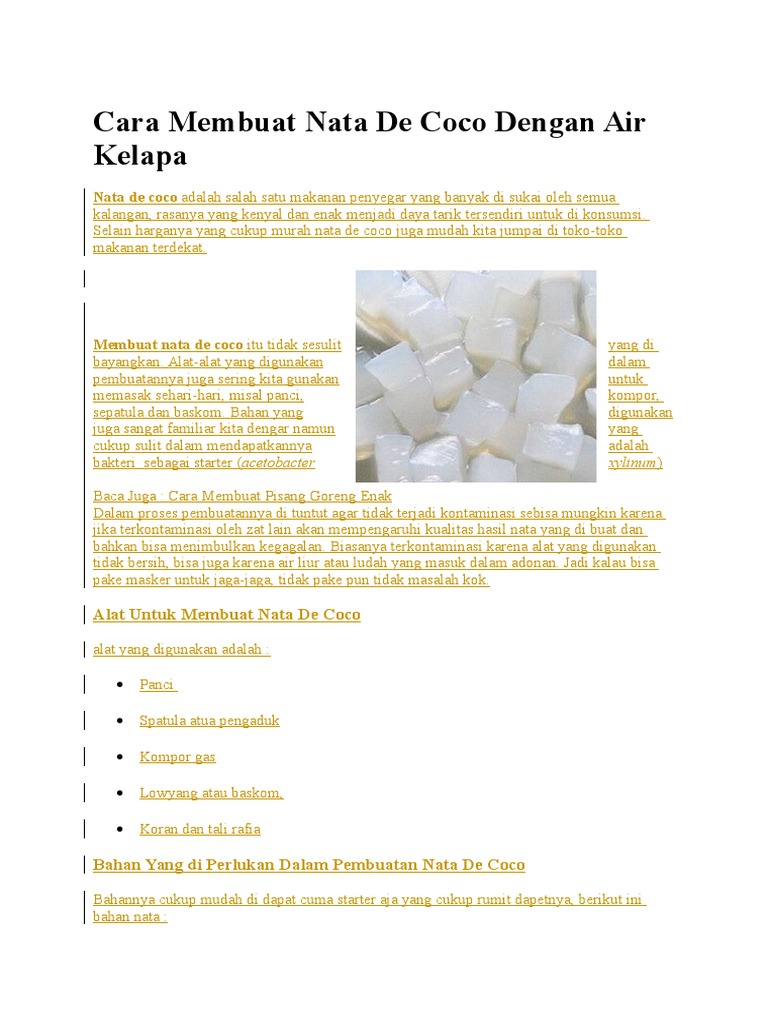 Pembuatan nata de coco otros contenidos. Sarah Adila RahmaNIM. Diantara bahan alamiah yang bisa digunakan dari air kelapa.